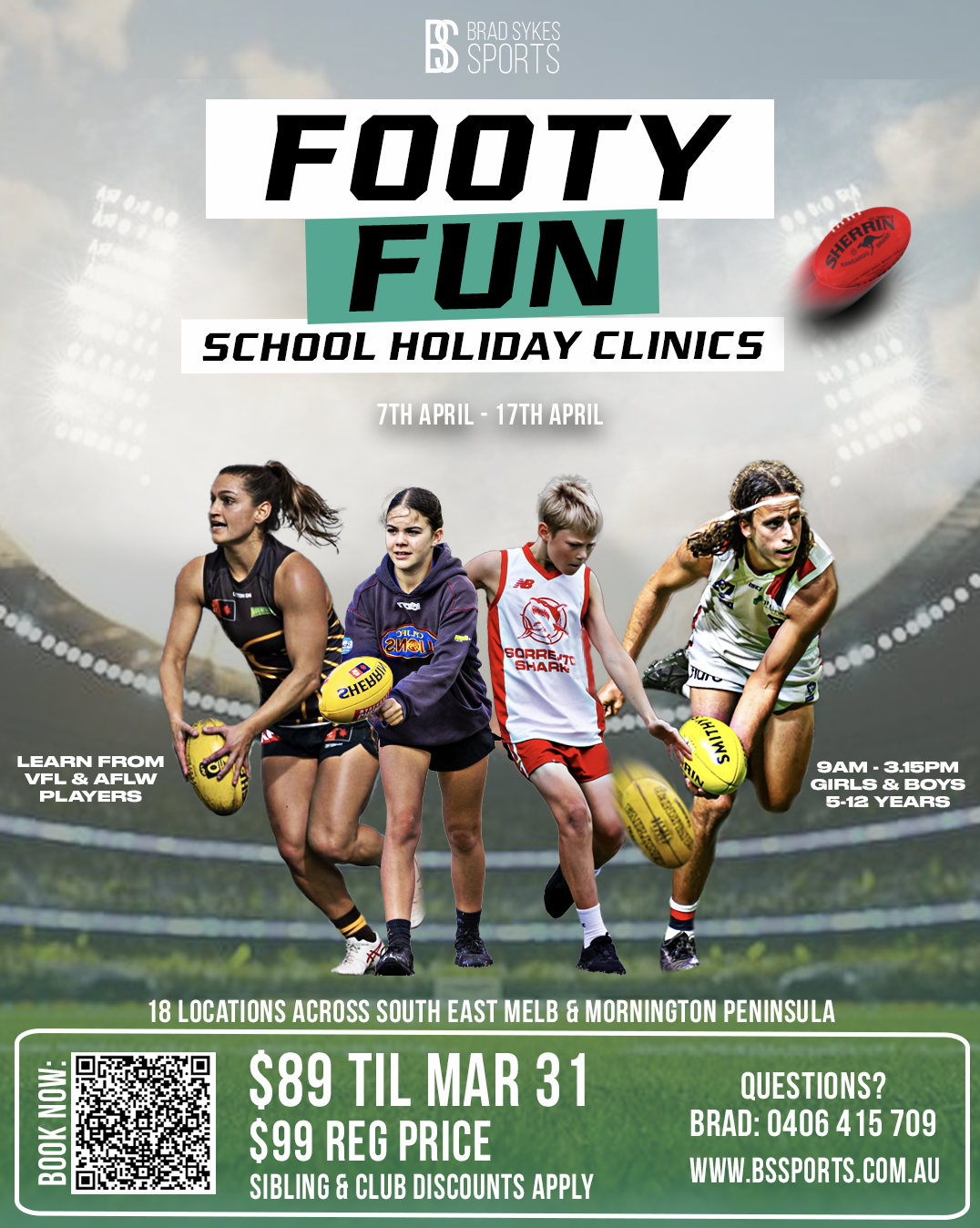 Break the boredom every school holidays with our Footy Fun and Specialist AFL Clinics. Learn from VFL/W and AFL/W players whilst having an absolute blast with mates new and old.